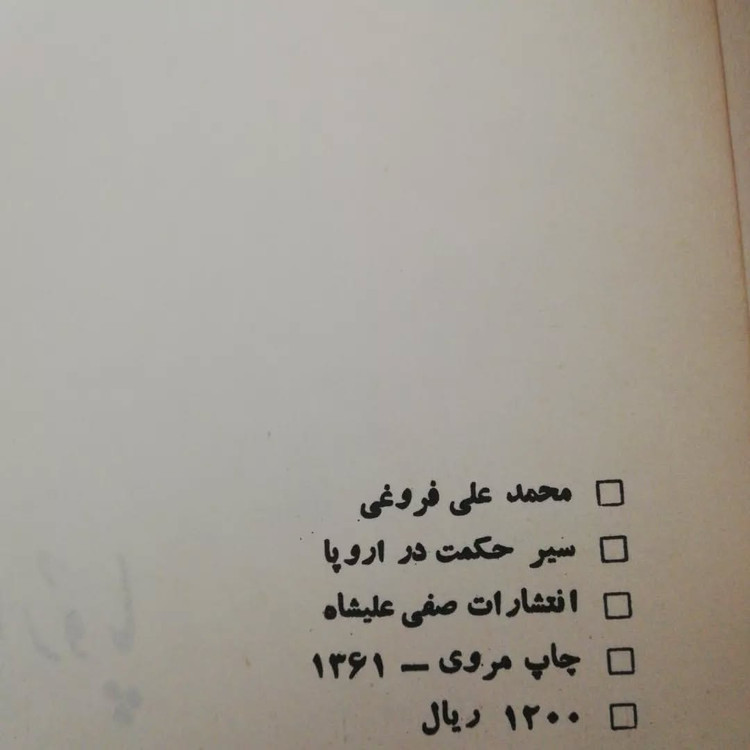 سیر حکمت در اروپا محمدعلی فروغی انتشارات صفی علیشاه