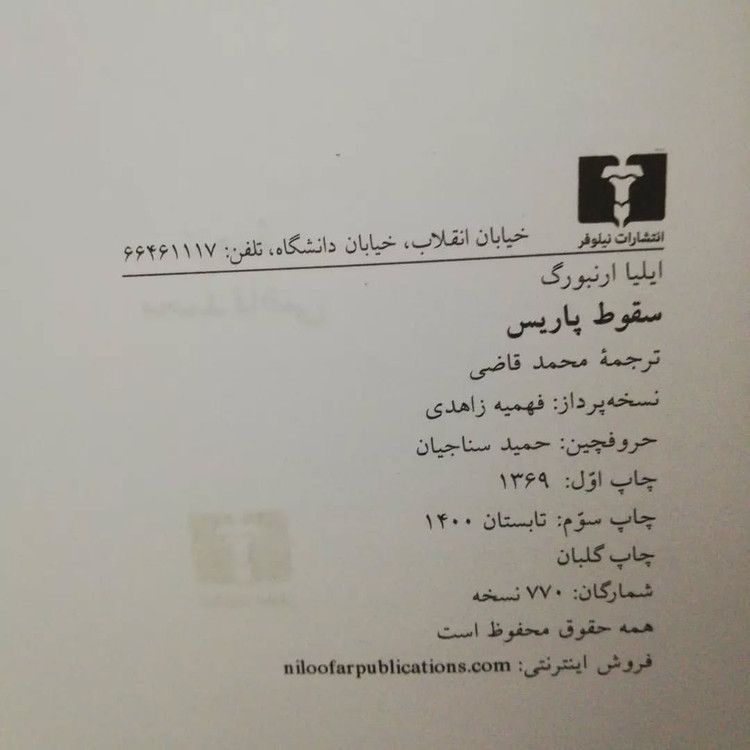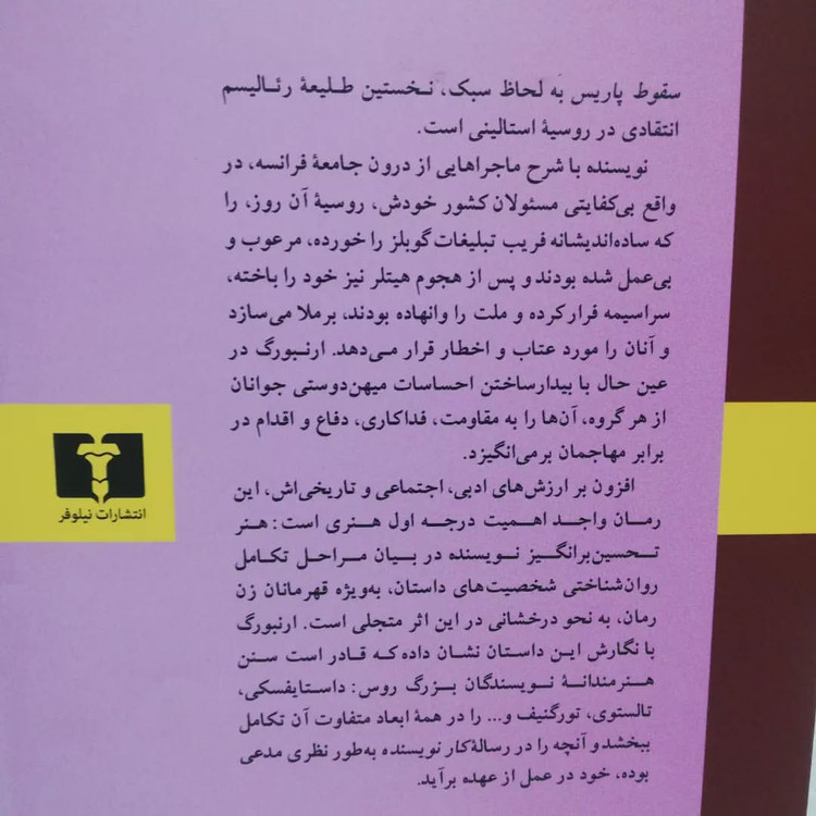 نویسنده : ایلیا ارنبورگ مترجم : محمد قاضی ناشر: انتشارات نیلوفر انتشار: ۱۴۰۰ صفحات: ۷۱۱ صفحه جلد: سخت (روکش دار)