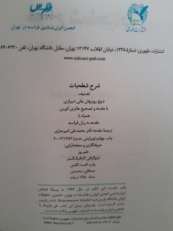 شرح شطحیات روزبهان بقلی شیرازی انتشارات طهوری