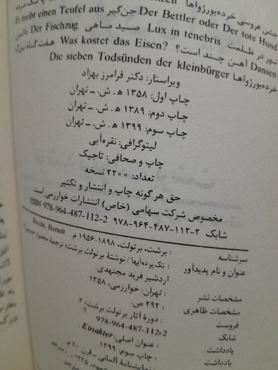 تک پرده ایها برتولت برشت انتشارات خوارزمی
