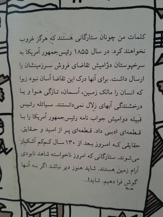 سخنان سیاتله(رئیس قبیله سرخپوستها)به رئیس جمهور آمریکا